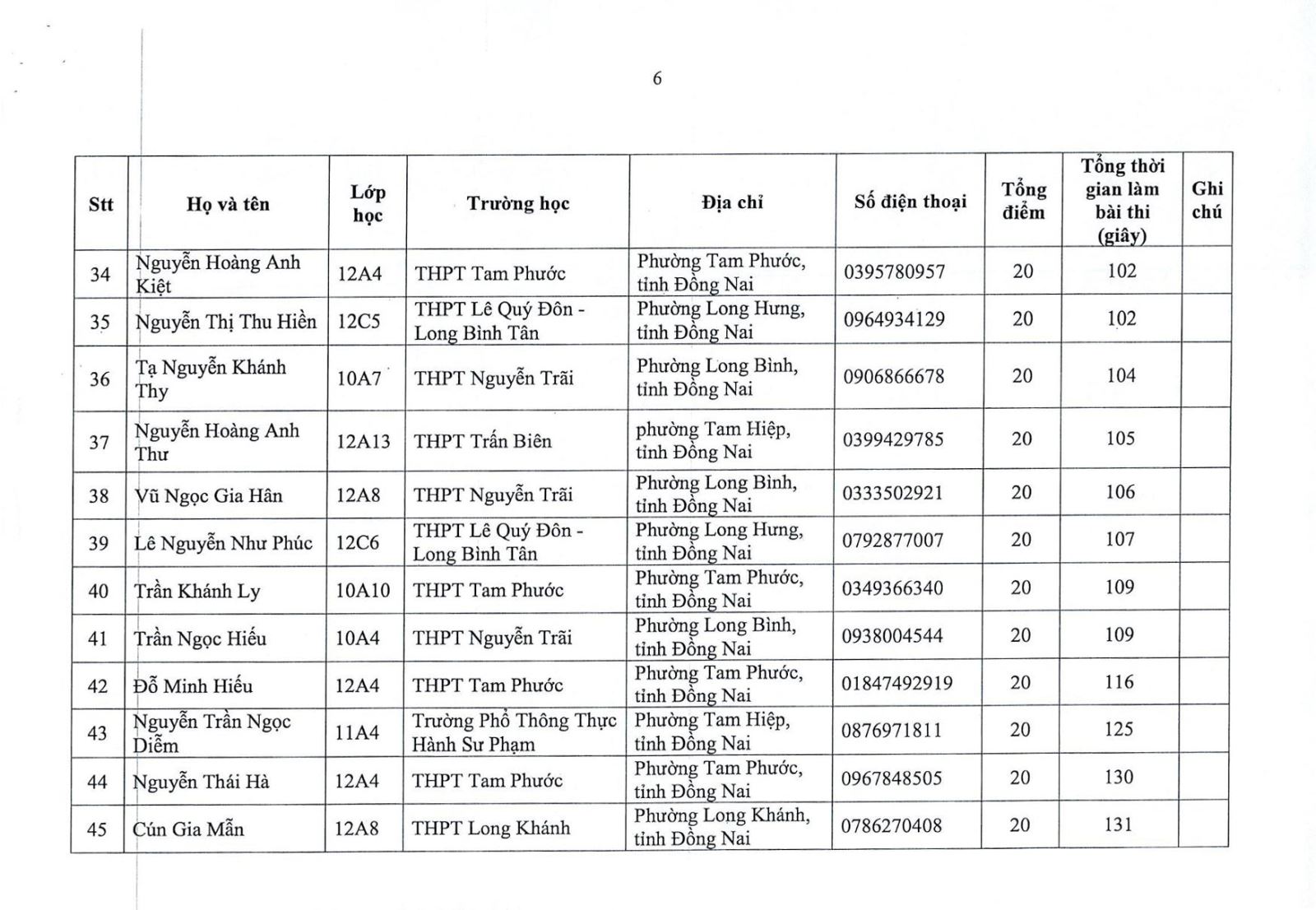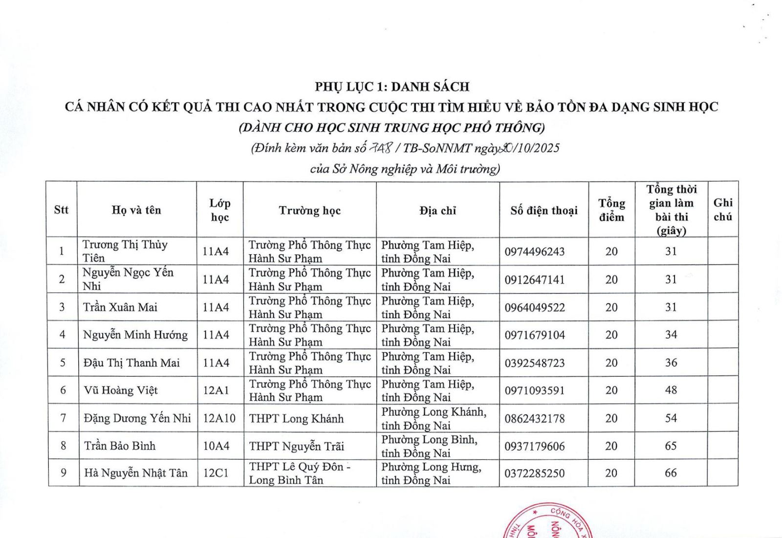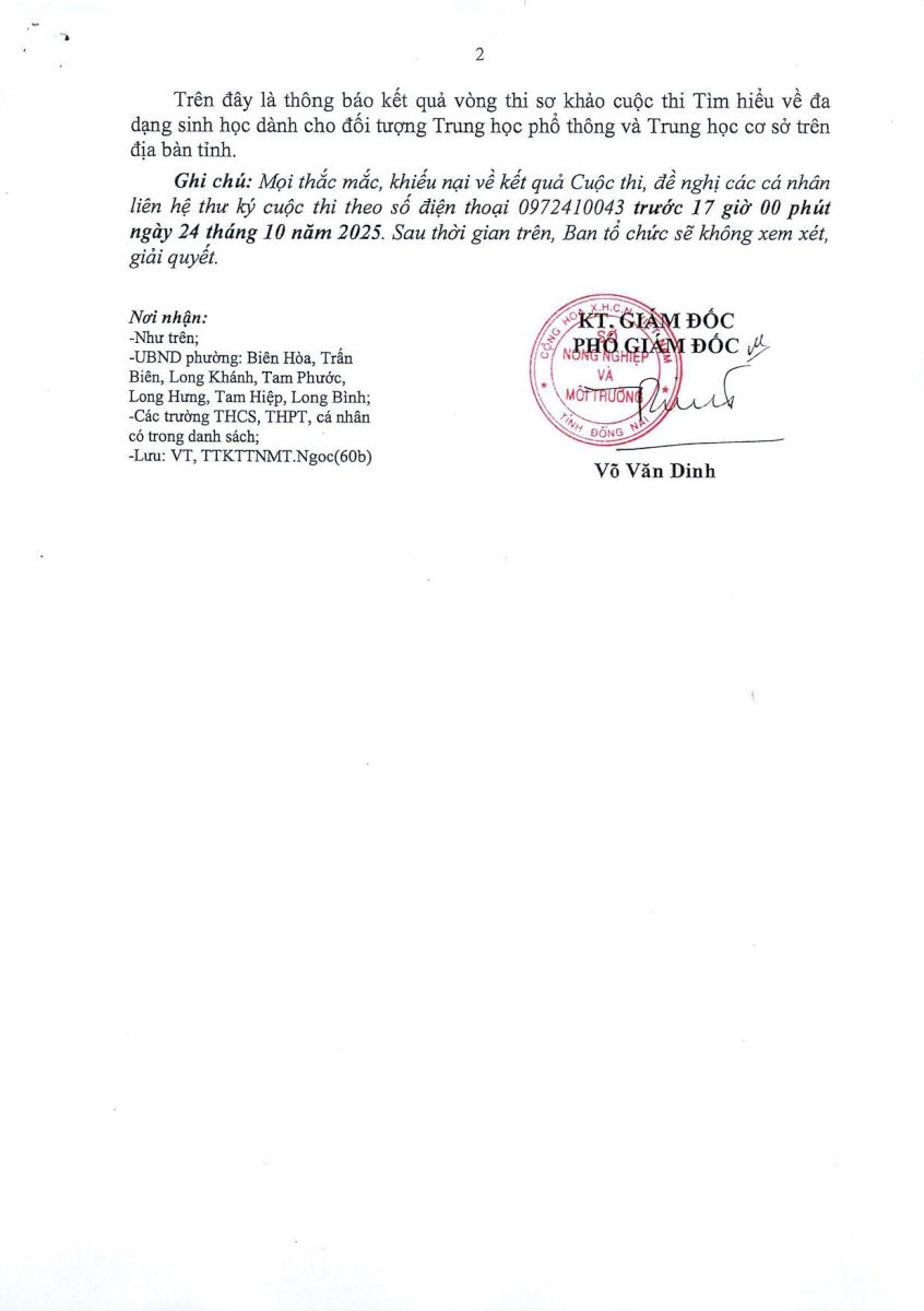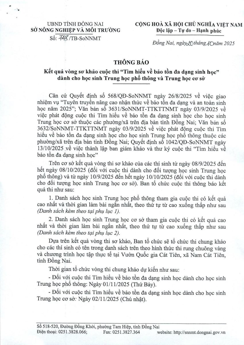 Kết quả vòng sơ khảo cuộc thi "Tìm hiểu về bảo tồn đa dạng sinh học" dành cho học sinh Trung học phổ thông và Trung học cơ sở