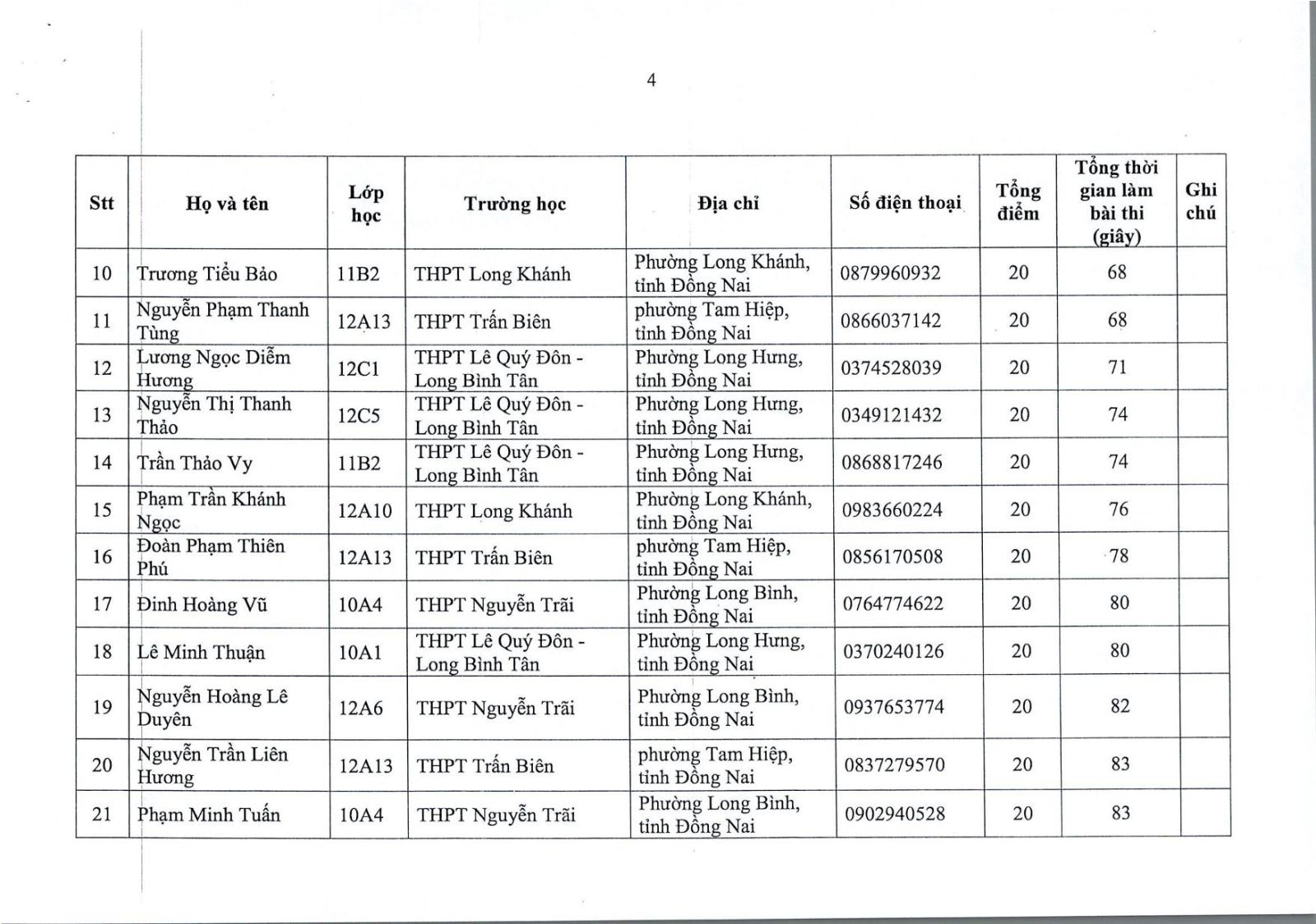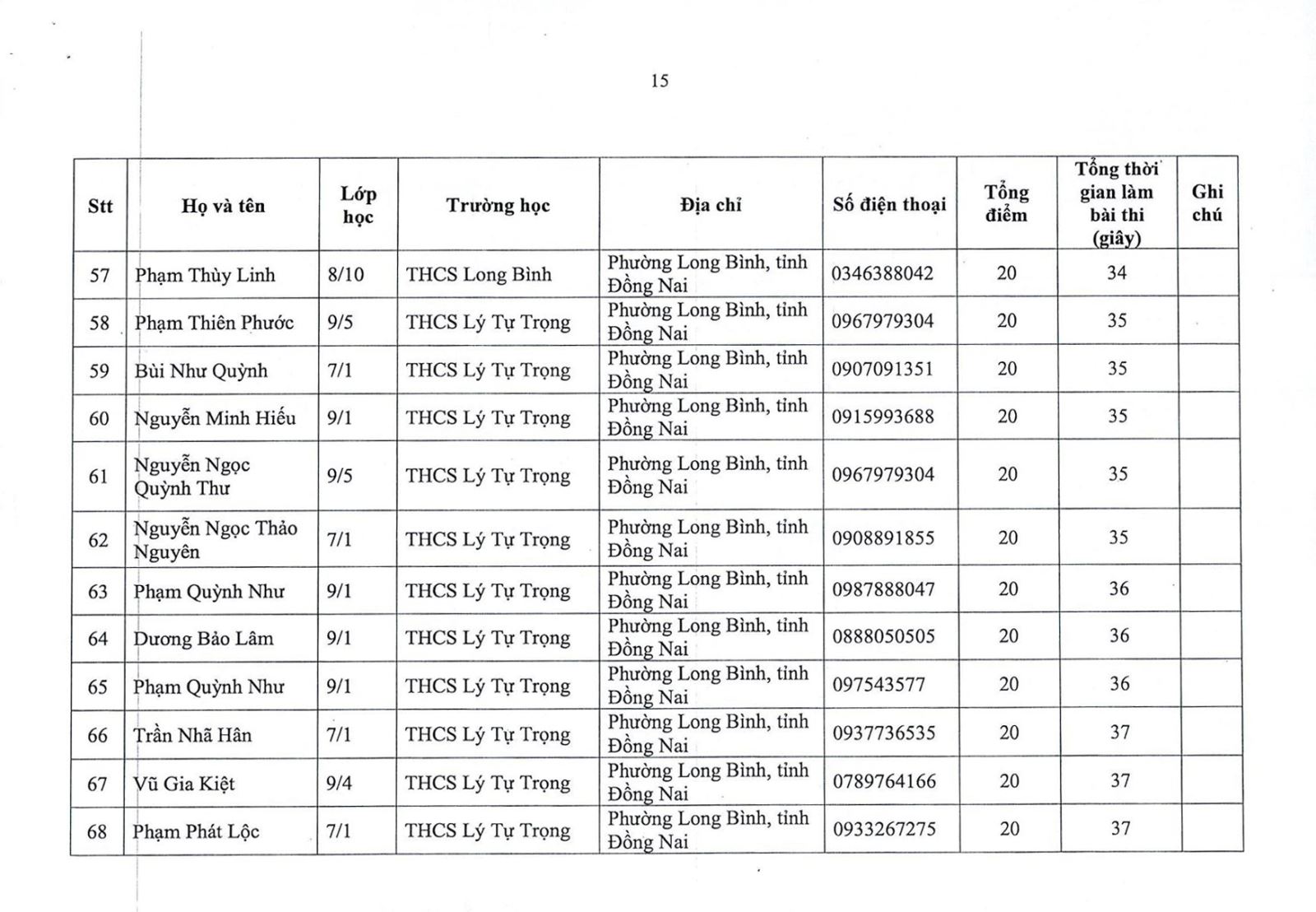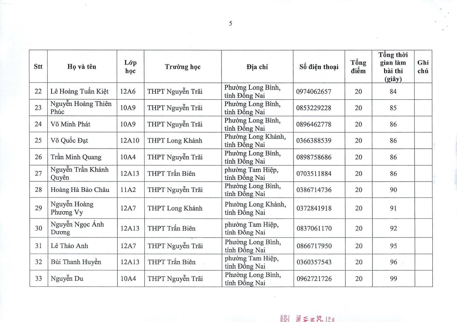 Kết quả vòng sơ khảo cuộc thi "Tìm hiểu về bảo tồn đa dạng sinh học" dành cho học sinh Trung học phổ thông và Trung học cơ sở